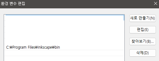 exe가 있는 폴더(예: C:\Program Files\Inkscape 또는 C:\Program Files\Inkscape\bin)를 PATH에 추가해야 한다.